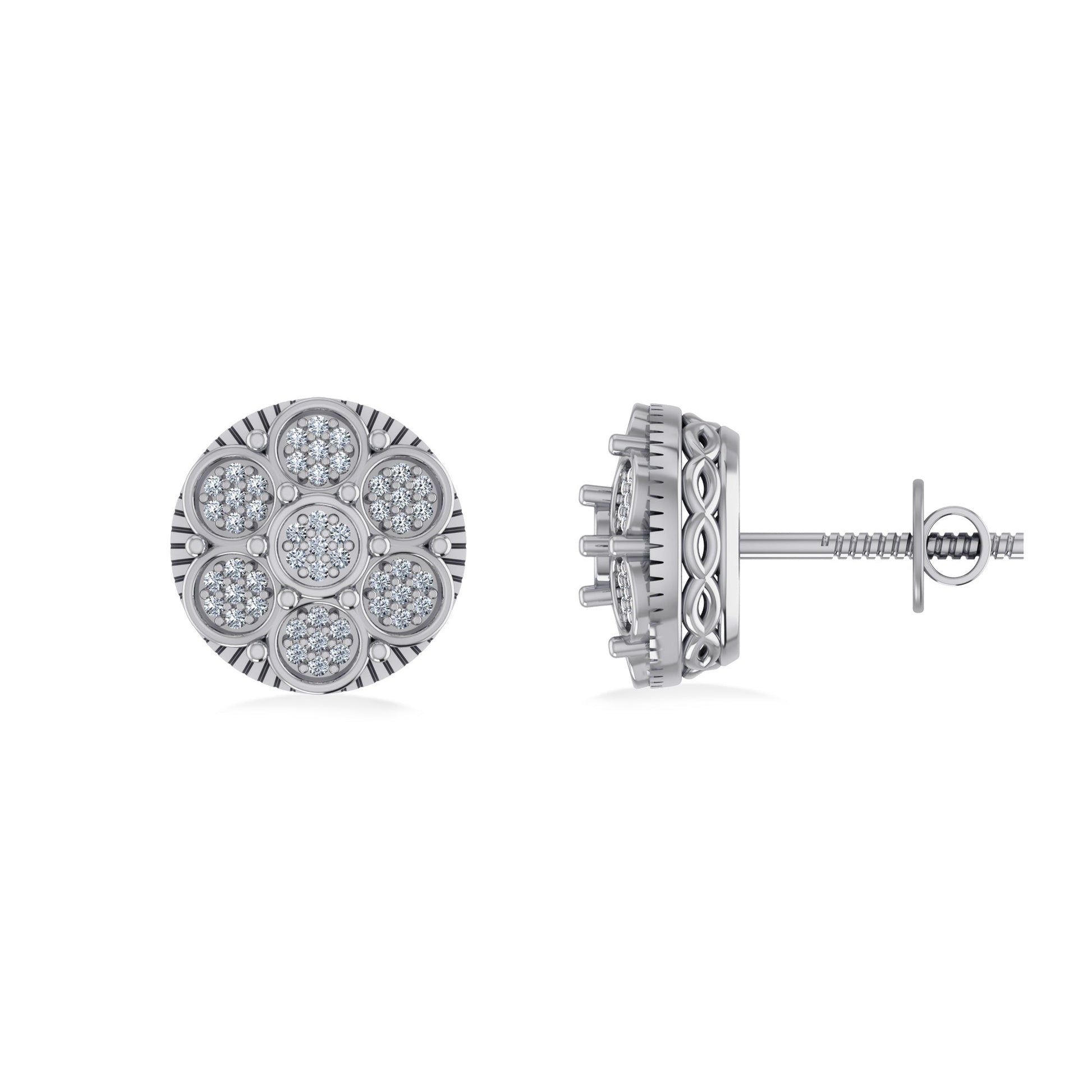 10K White Gold Round Diamond Flower Designer Mens Stud Earring 1/8 Ctw