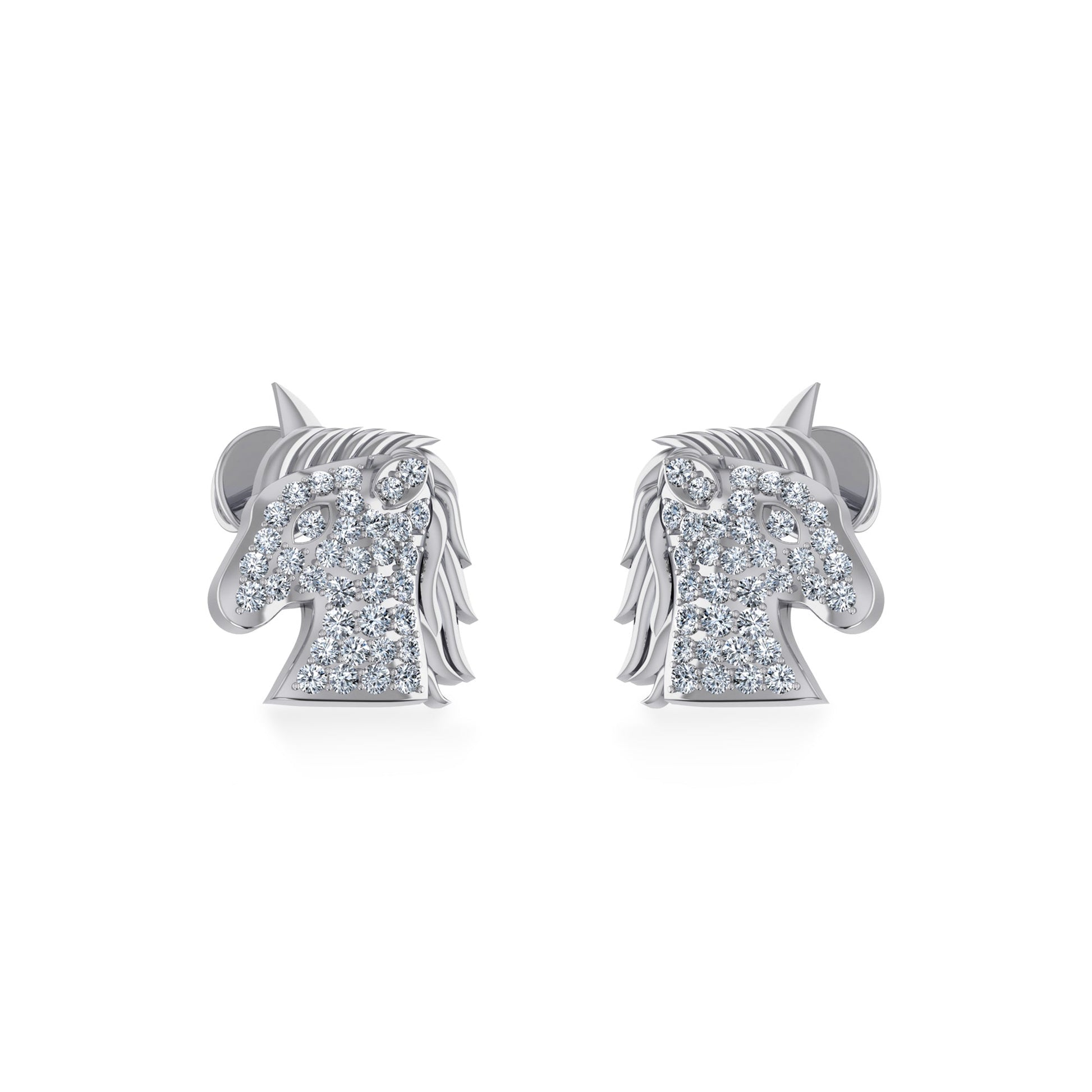 10K White Gold Round Diamond Horse Animal Designer Stud Earring 1/5 Ctw