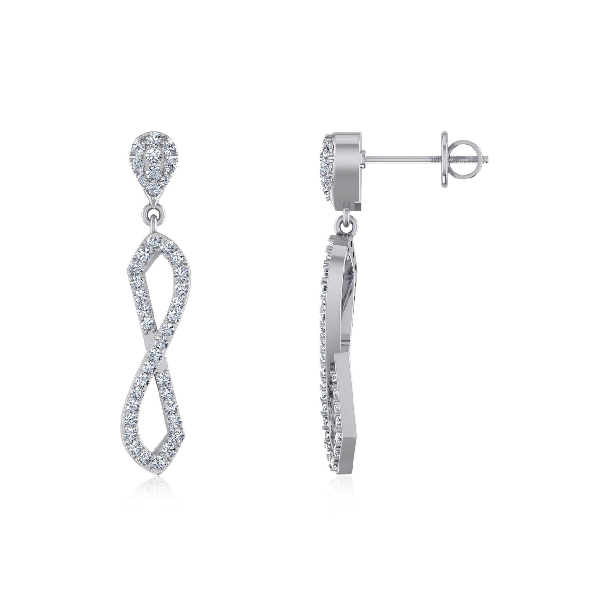 TreasureBox: 10K White Gold Round Diamond Twisted Dangling Earrings – 7/8 Ctw