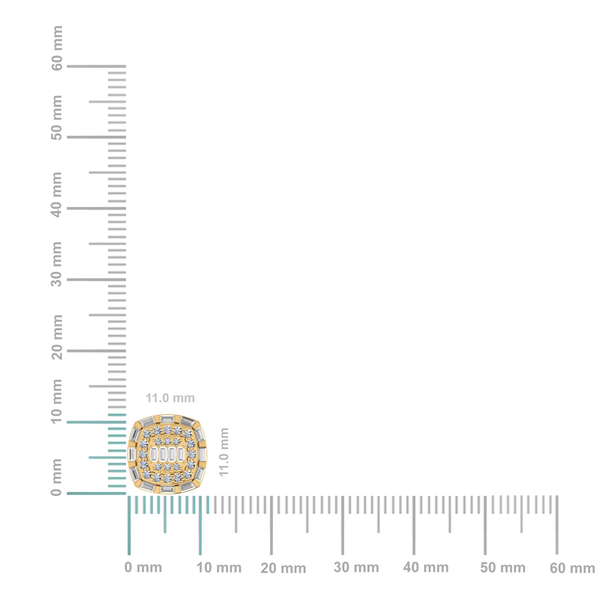 TreasureBox Presents: 10K Yellow Gold Round Baguette Diamond Square Designer Earrings – 3/4 Ctw