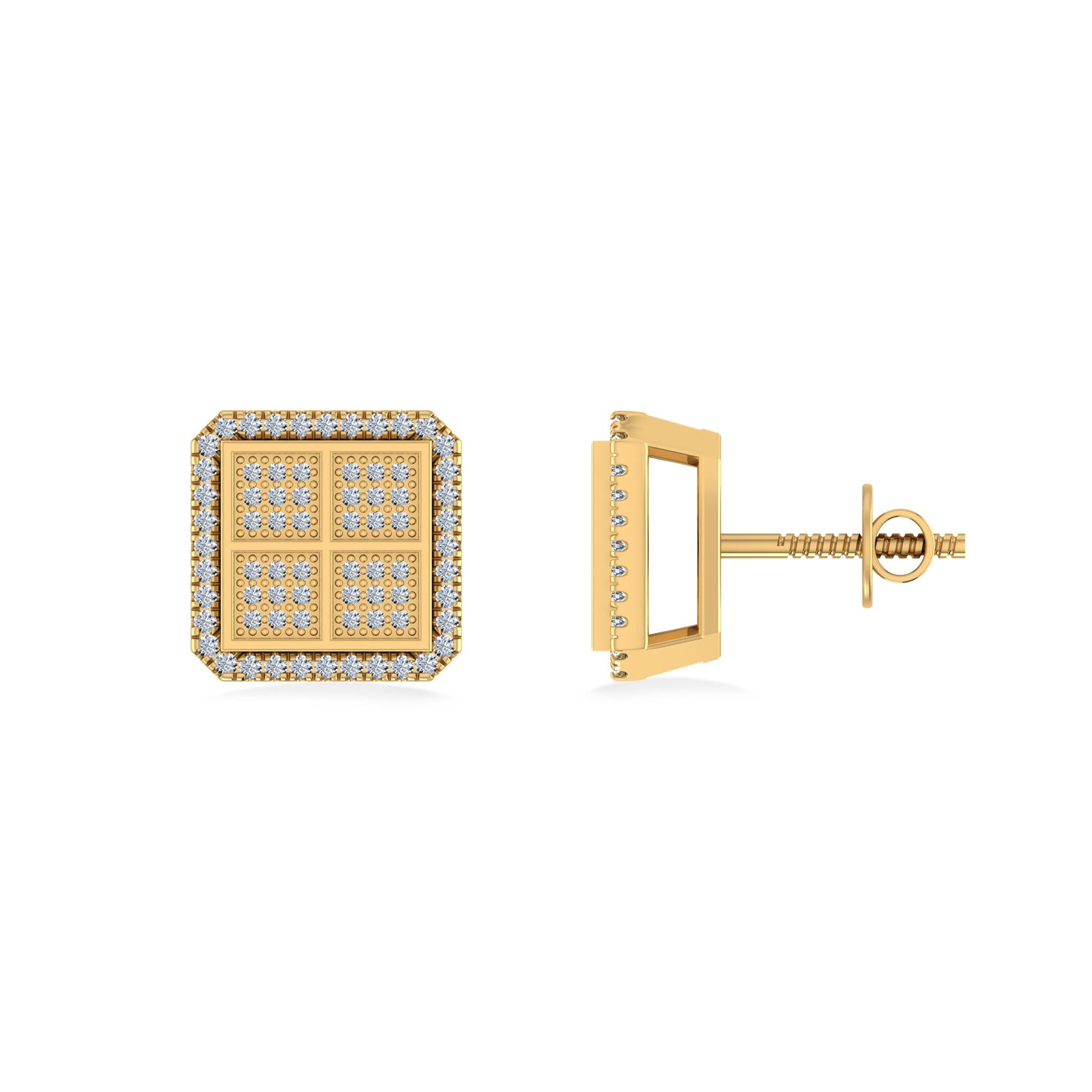 10K Yellow Gold Round Baguette Diamond Square Shape Designer Mens Stud Earring 1/5 Ctw