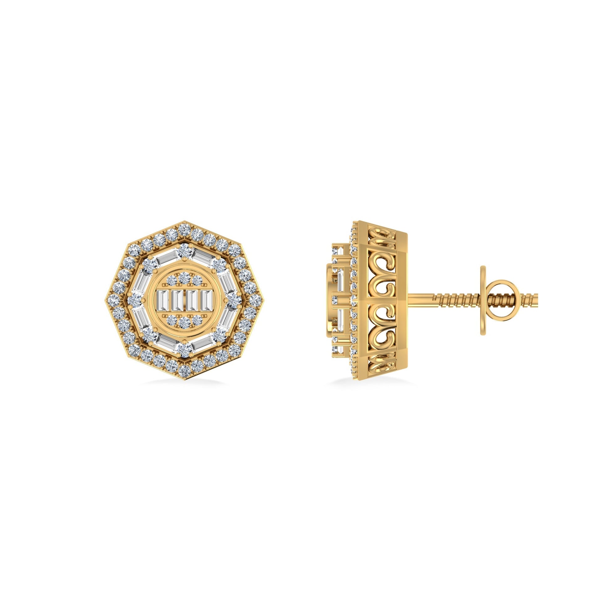 TreasureBox Presents: 10K Yellow Gold Round Diamond Designer Men's Stud Earring – 1/3 Ctw