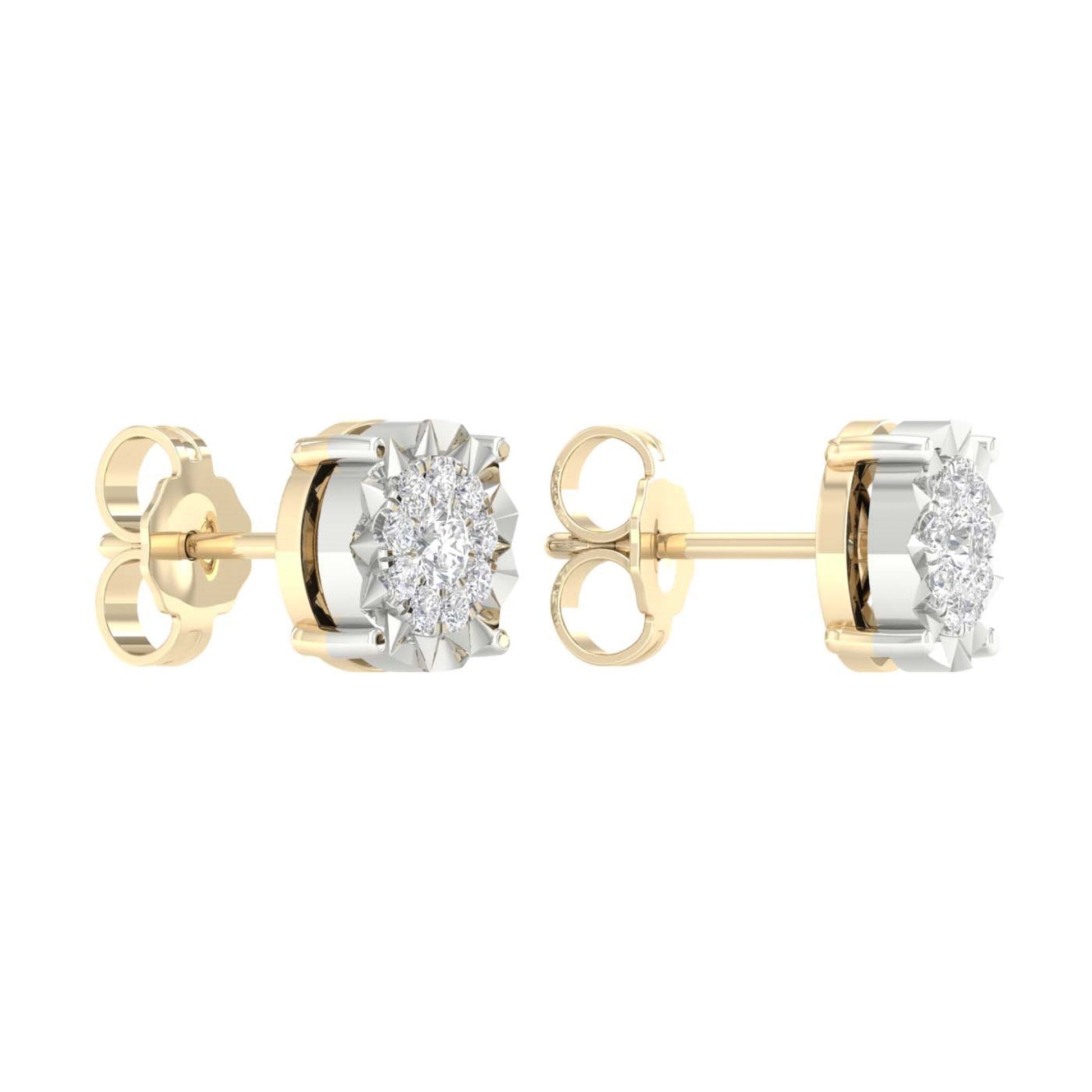 TreasureBox: 10K Yellow Gold Round Diamond Designer Stud Earrings – 1/4 Ctw