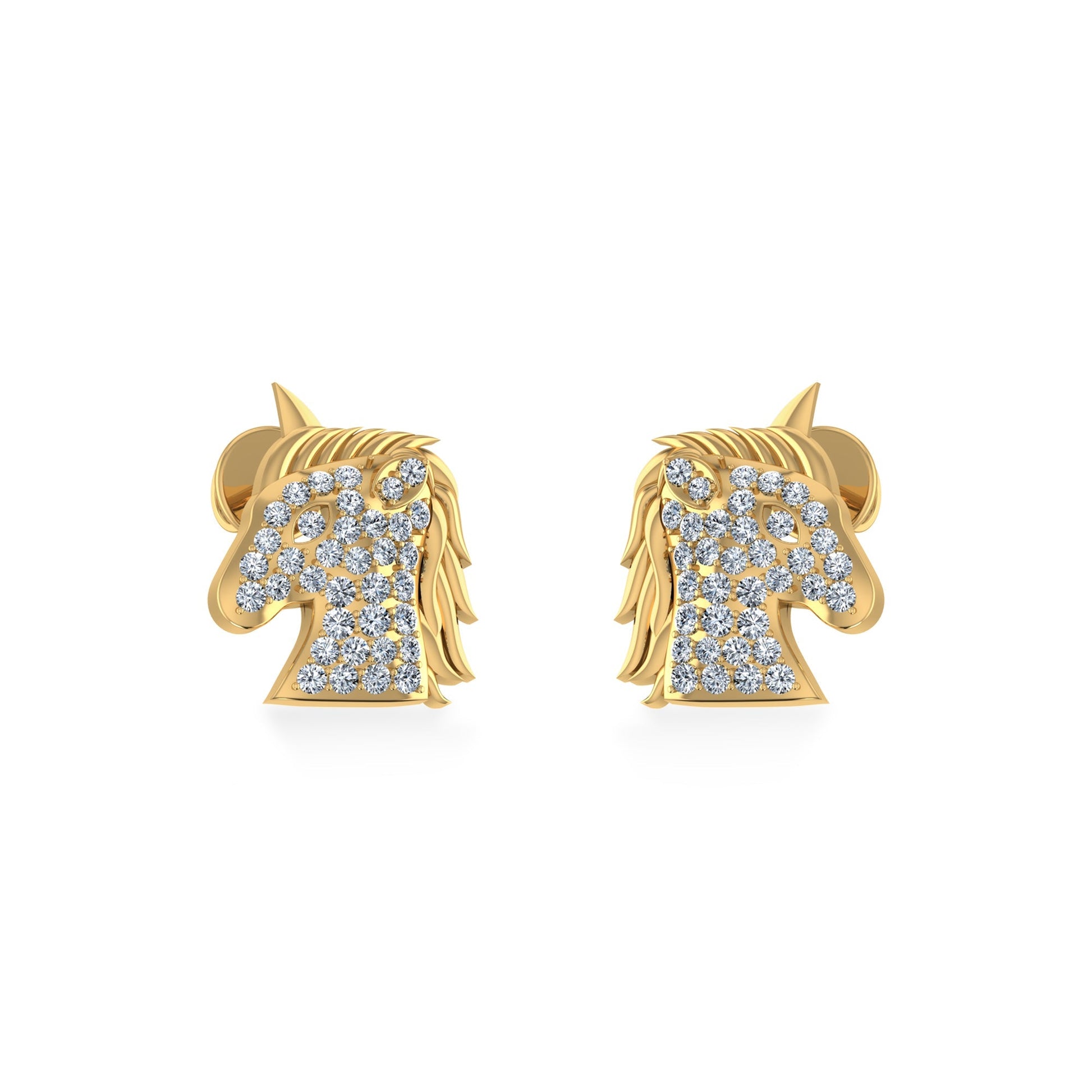 10K Yellow Gold Round Diamond Horse Animal Designer Stud Earring 1/5 Ctw