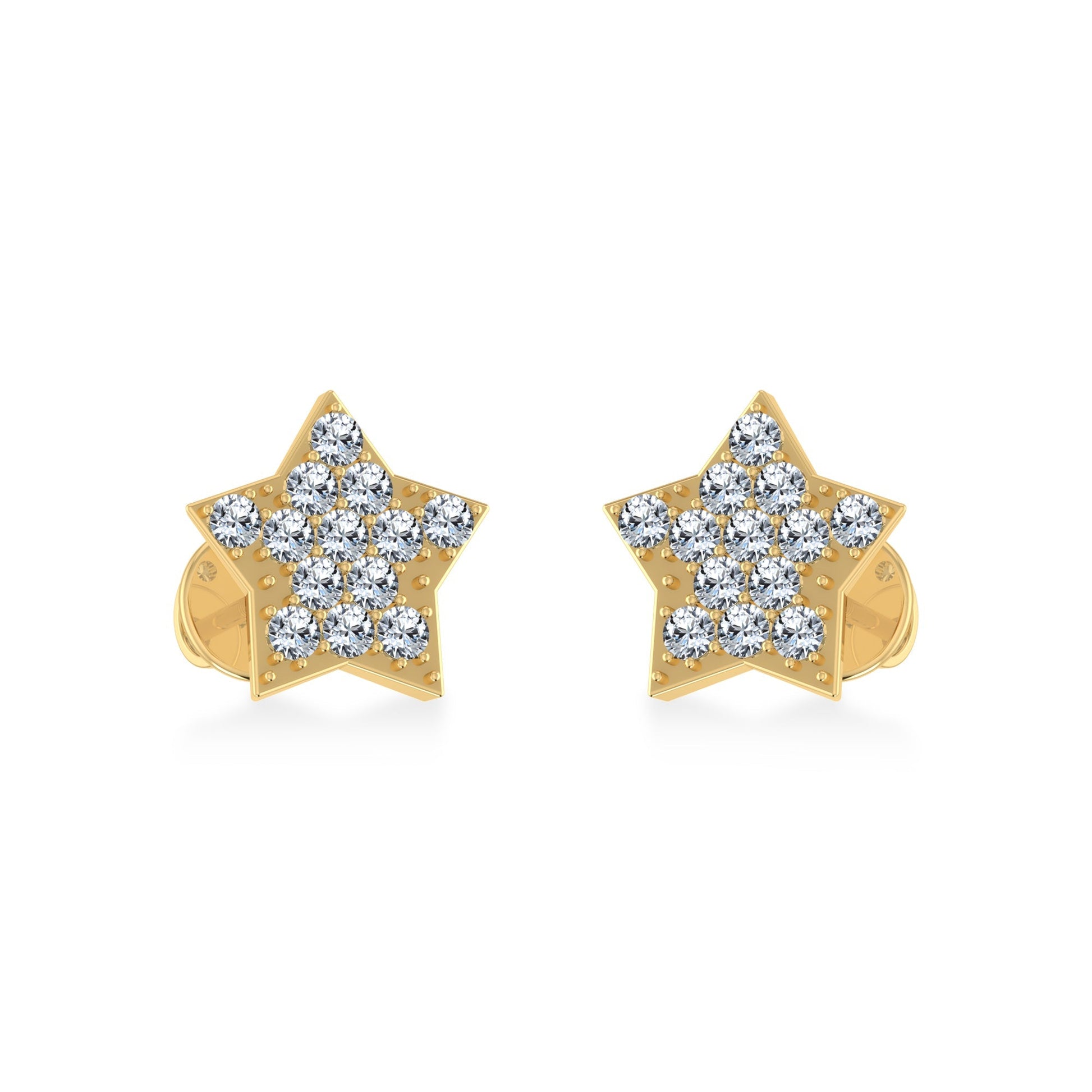10K Yellow Gold Round Diamond Star Stud Earring 1/8 Ctw