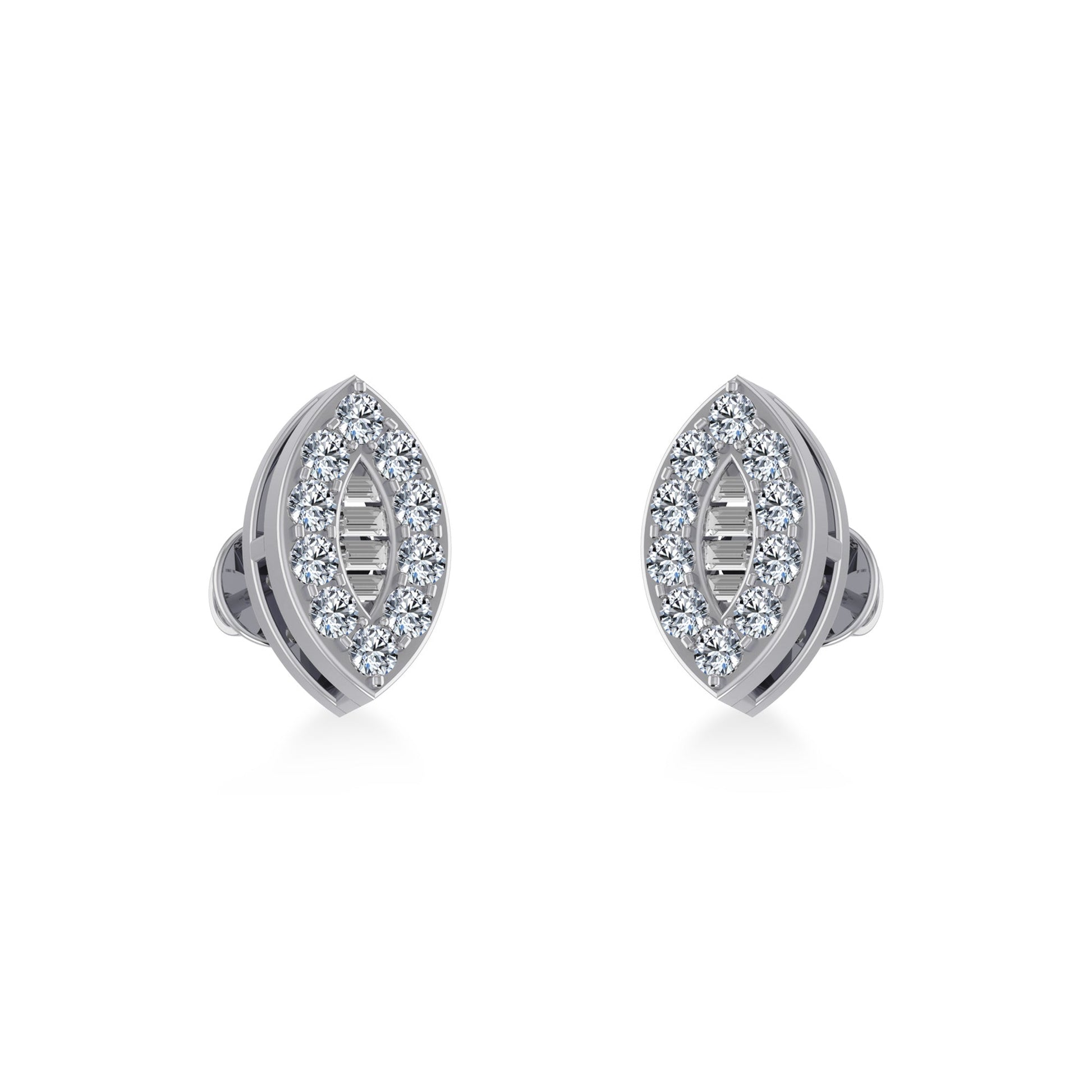 14K White Gold Baguette Diamond Marquise Shape Stud Earring 1/4 Ctw