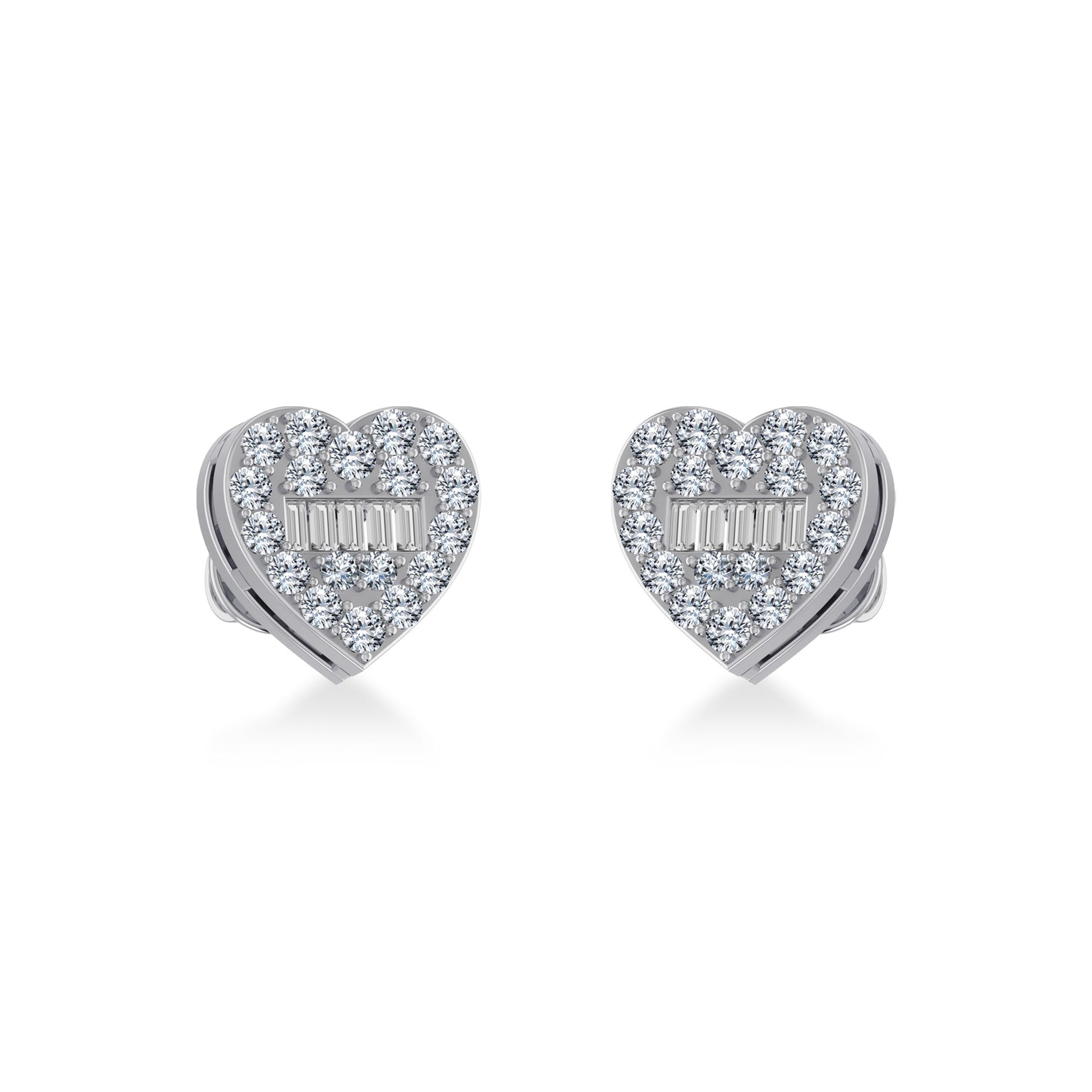 TreasureBox: 14K White Gold Round Baguette Diamond Heart Shape Cluster Stud Earrings – 3/8 Ctw