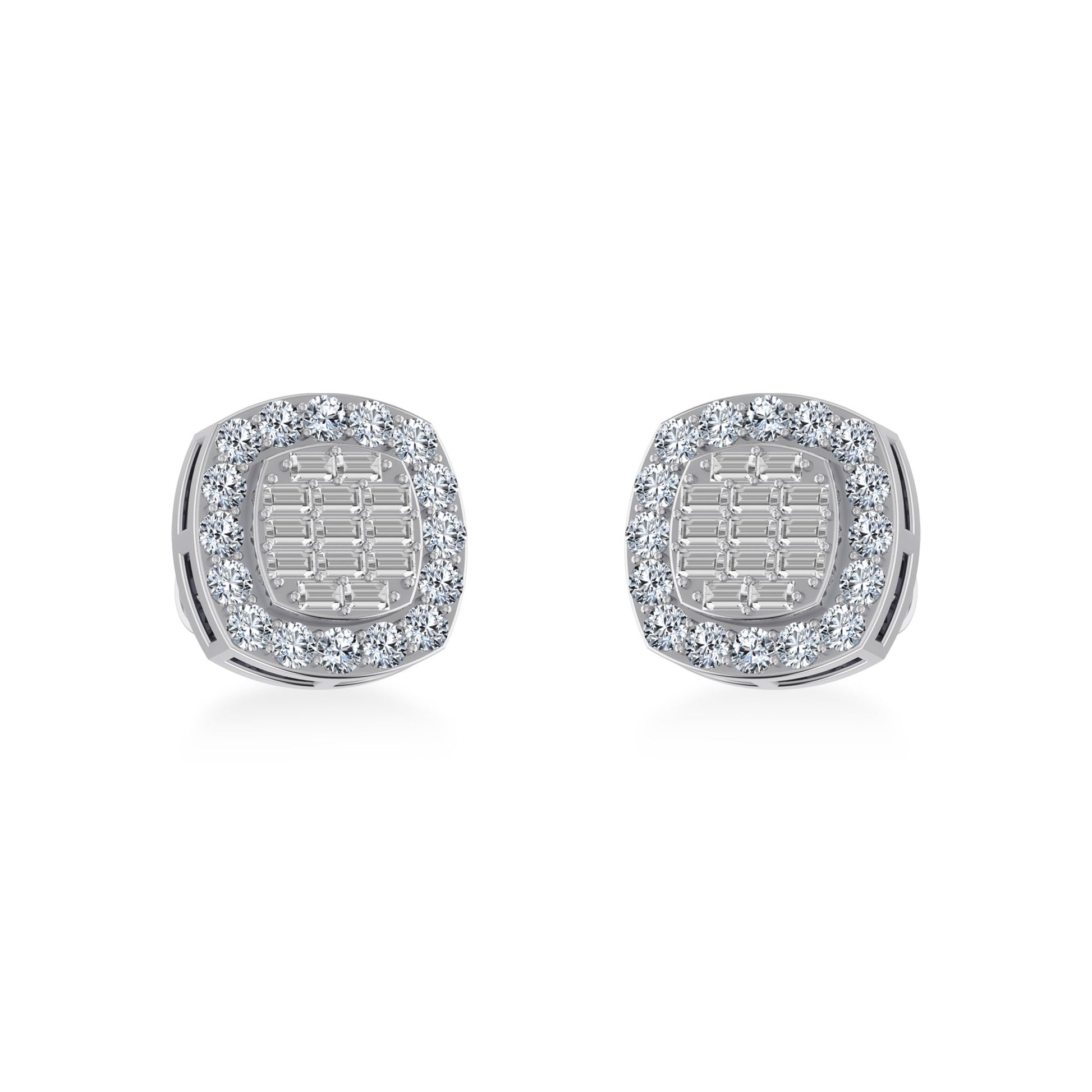 Make an unforgettable impression with these striking 14K white gold diamond stud earrings, showcasing a harmonious blend of round and baguette-cut diamonds totaling 5/8 carat. Designed for those with an eye for modern elegance, each stud dazzles with its unique geometric brilliance and expert craftsmanship.