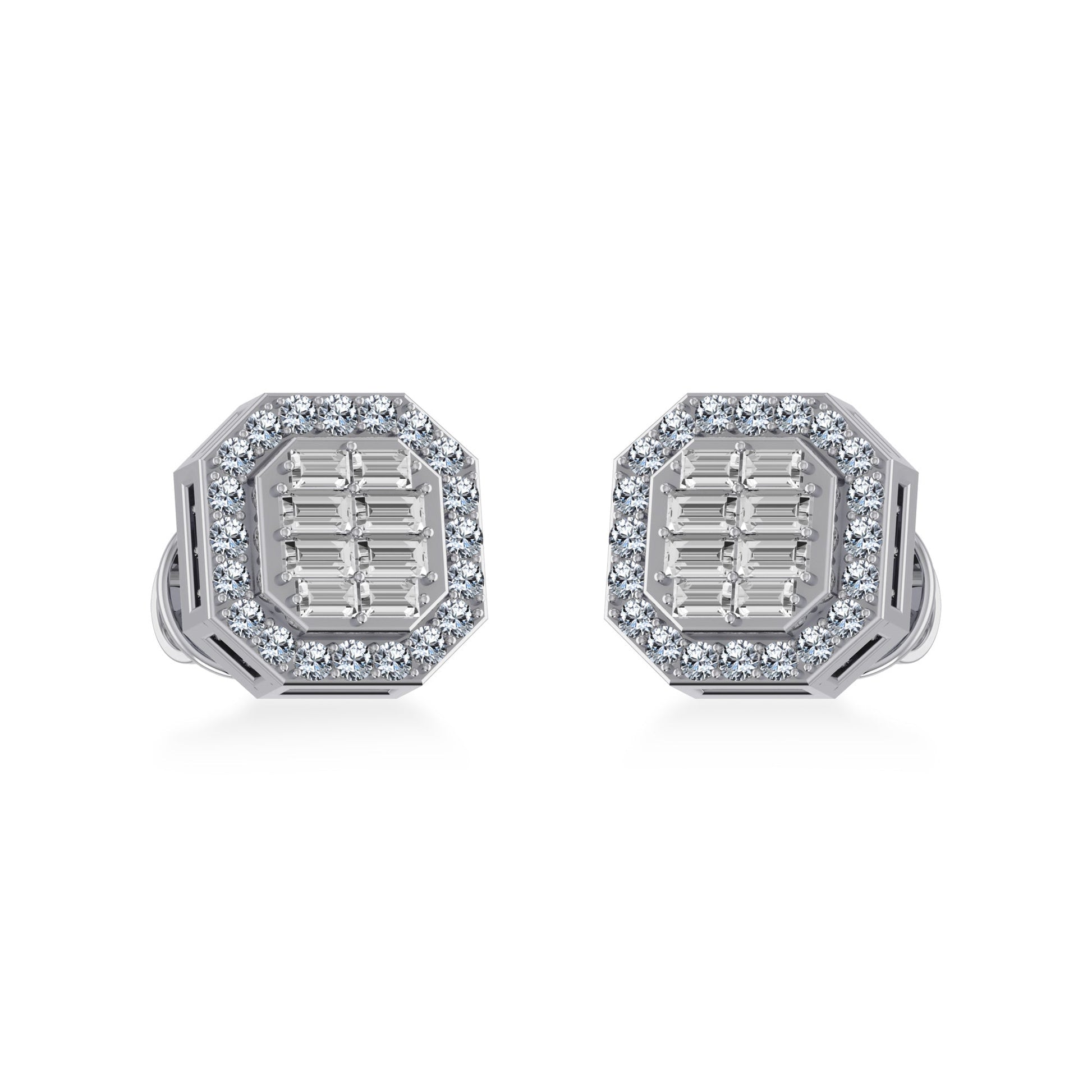 TreasureBox Presents: 14K White Gold Round & Baguette Diamond Stud Earrings – 1/4 Ctw