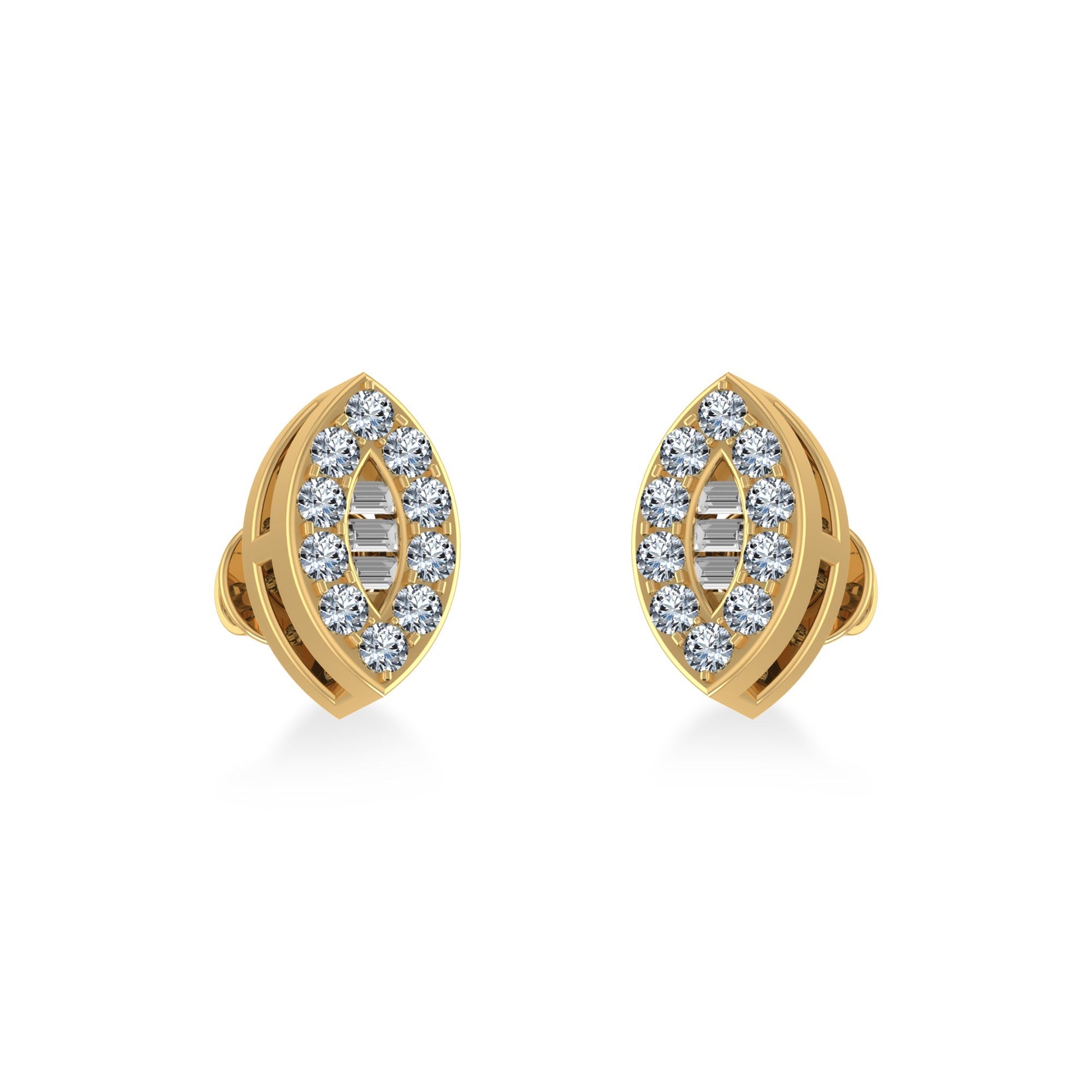 TreasureBox: 14K Yellow Gold Baguette Diamond Marquise Shape Cluster Stud Earrings – 1/8 Ctw