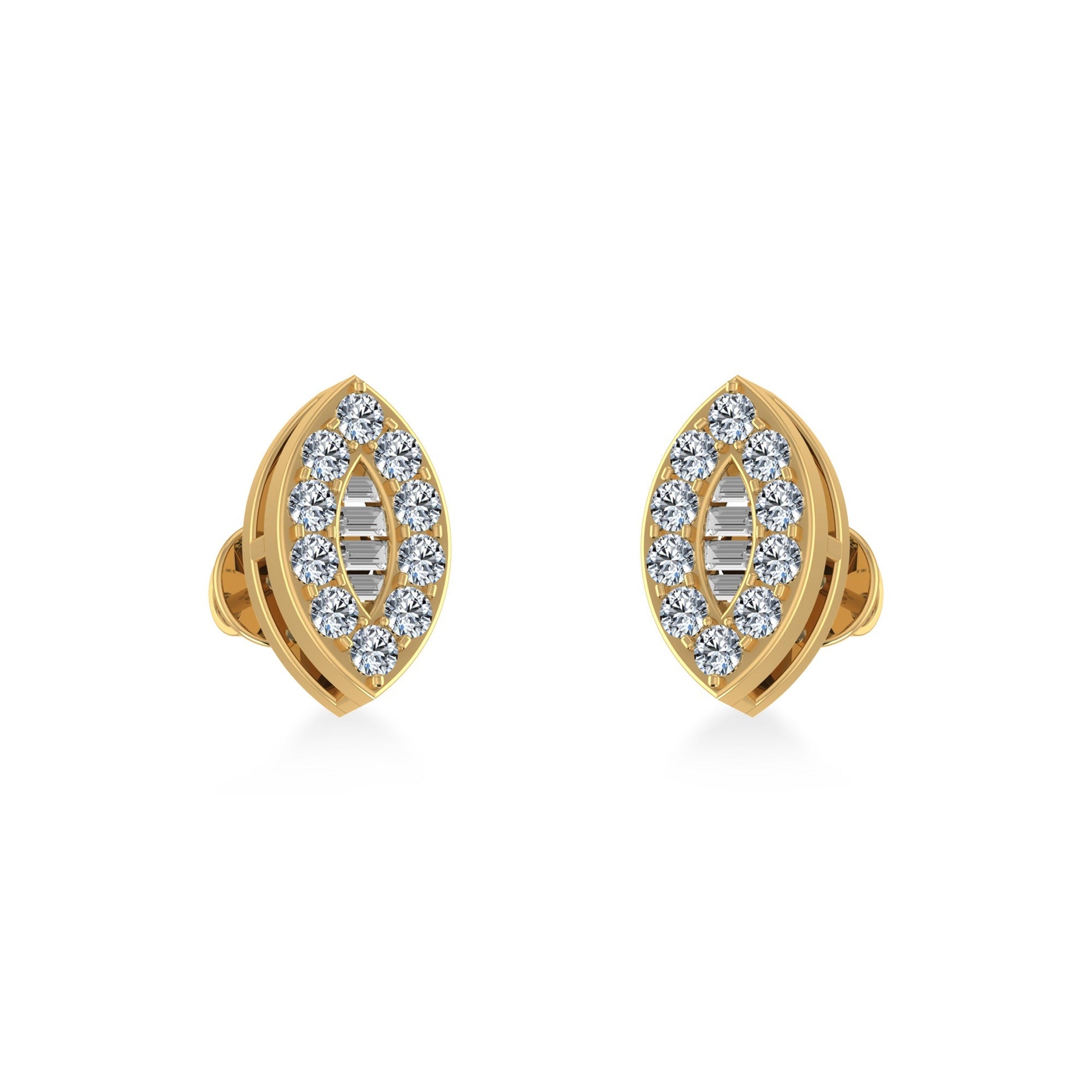 14K Yellow Gold Baguette Diamond Marquise Shape Stud Earring 1/4 Ctw