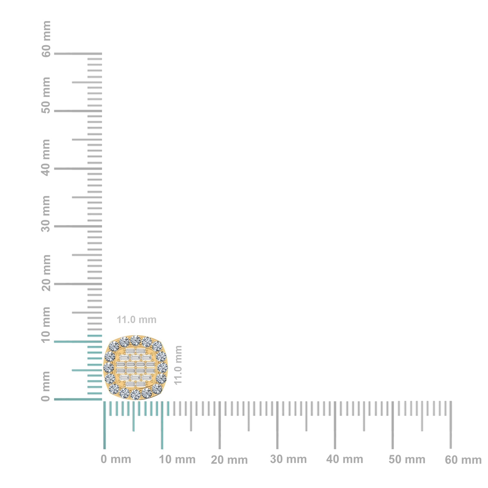 14K Yellow Gold Round Baguette Diamond Square Shape Stud Earrings 1 Ctw