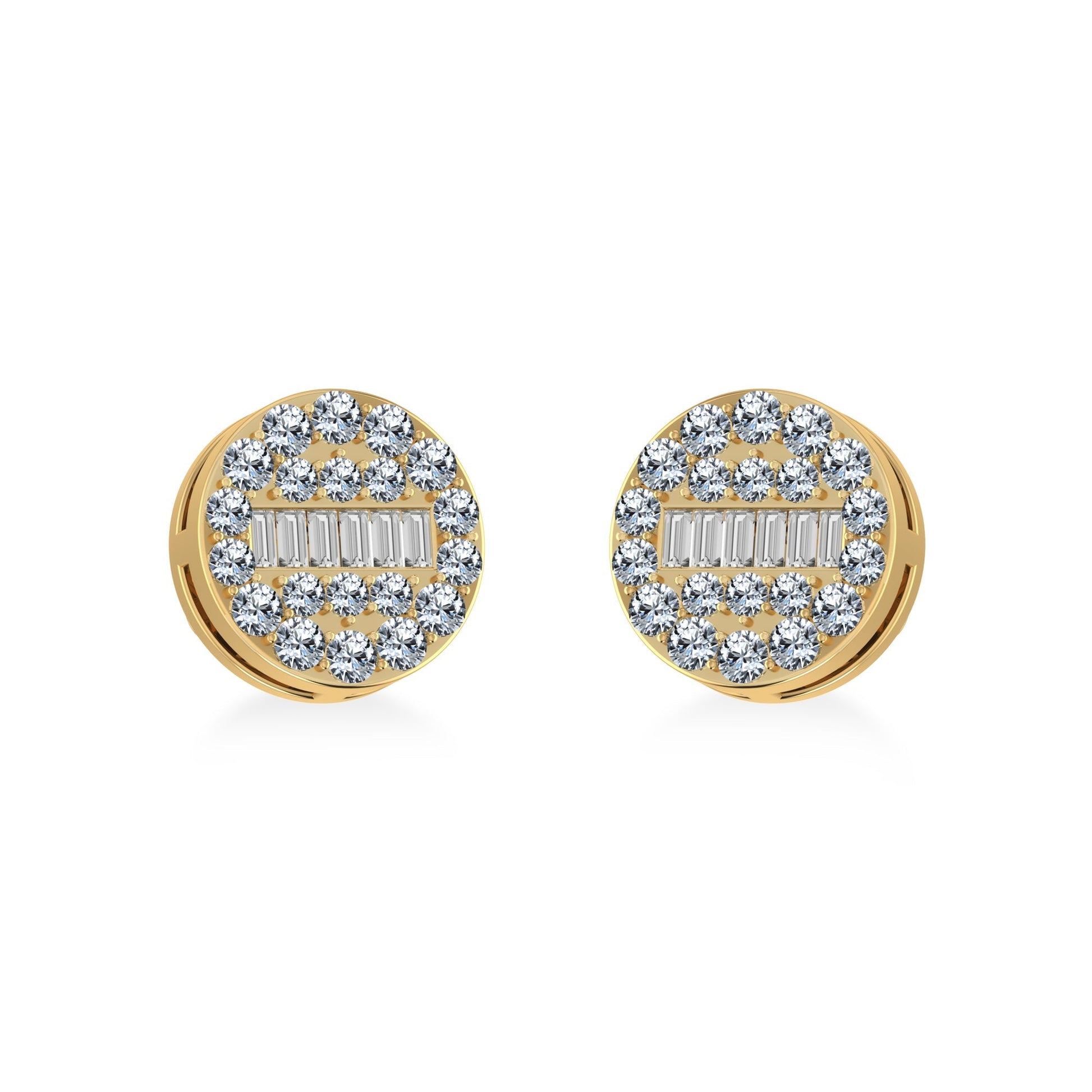 TreasureBox Presents: 14K Yellow Gold Round Baguette Diamond Stud Earrings – 3/8 Ctw