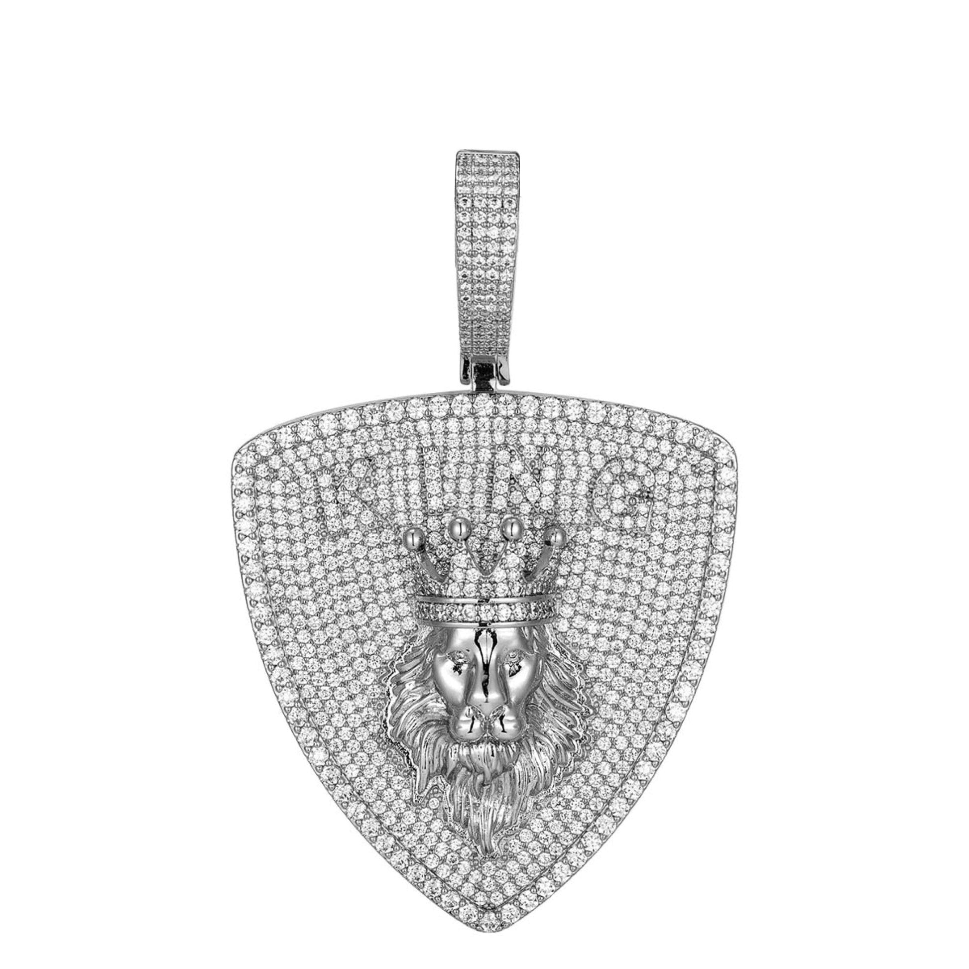 Sterling Silver Cubic Zirconia Lion Crown King Animal Pendant