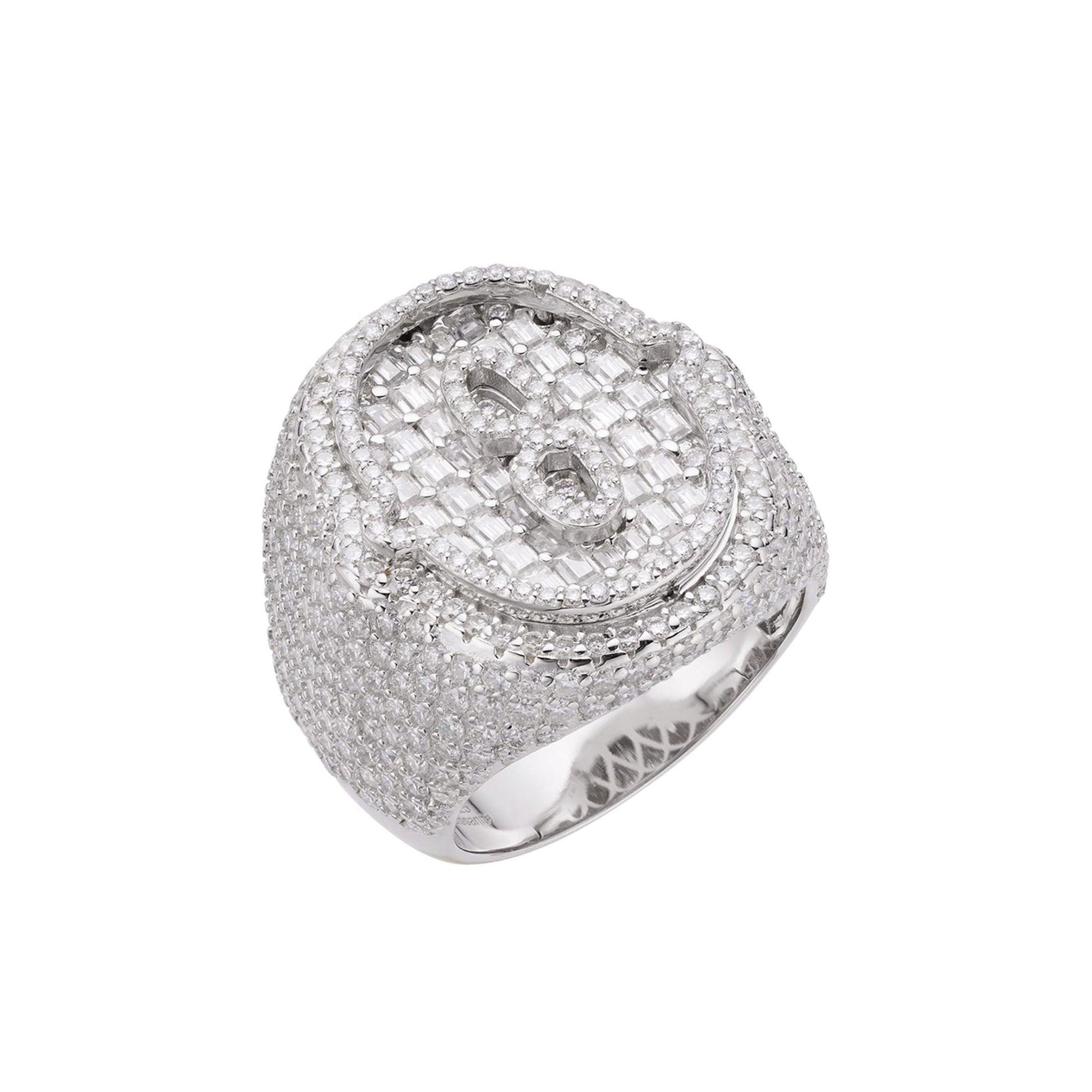 Sterling Silver Round Baugette Moissanite Albhabet O letter Initial Size 10 Men Ring 6-3/8 Ctw